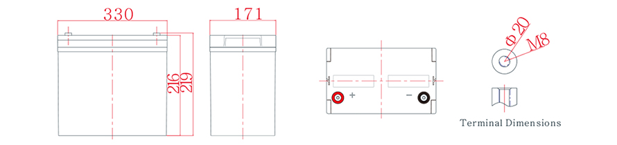 Dimension: 330 (L) x 171 (W) x 216 (H) x 219 (TH) Unité: mm