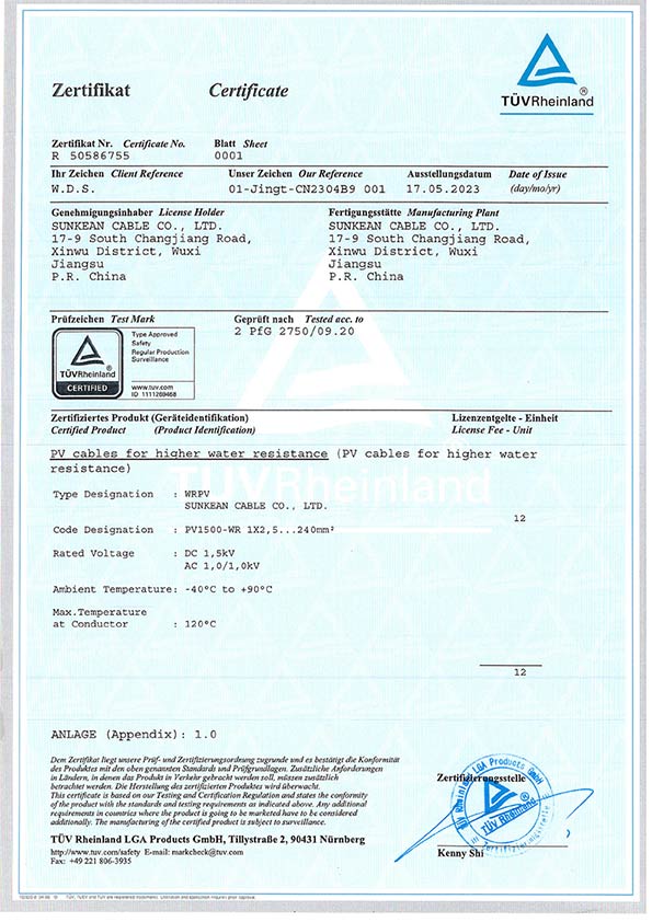 2 Certificat de câble solaire PfG/2750