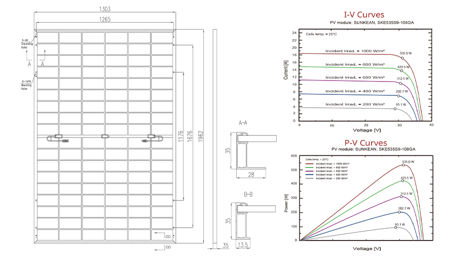 ce module adopte un double vitrage bifacial avec cadre qui offre une résistance exceptionnelle pour une capacité de charge plus élevée. l'efficacité du module peut atteindre 21.3%.