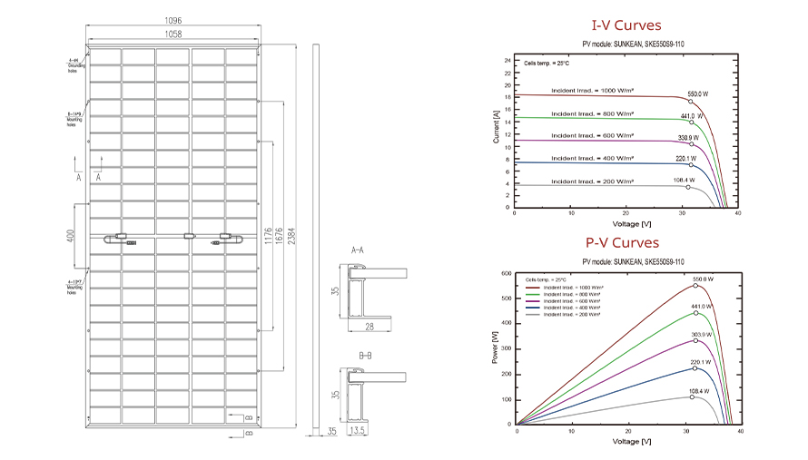 ce module adopte un double vitrage bifacial avec cadre qui offre une résistance exceptionnelle pour une capacité de charge plus élevée. l'efficacité du module peut atteindre 21.2%.