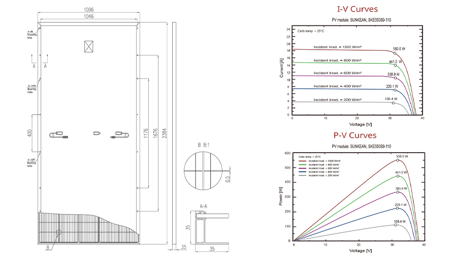 ces panneaux solaires sont produits en intégrant des tranches de silicium de 210 mm avec des technologies de demi-cellule coupée et multi-busbar.l'efficacité du module peut atteindre 21.2 %.