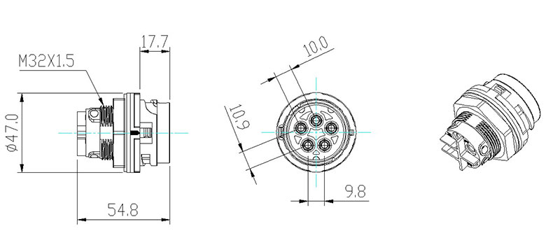 This ac 3-phase connector features a large current-carrying capacity and an excellent resistance to uv light and high temperatures, making it ideal for use in the connection of medium-power string inverters. The housing is made of a high quality, imported PA66. The stability and reliability are guaranteed thanks to the snap-lock coupling system.