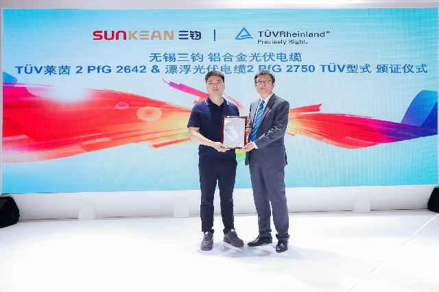 Le 24 mai 2023, TUV Rheinland a décerné à Sunkean la première certification standard 2PfG/2750 pour les câbles photovoltaïques flottants en Chine lors de la 16e conférence et exposition internationale sur l'énergie solaire photovoltaïque et intelligente (SNEC).