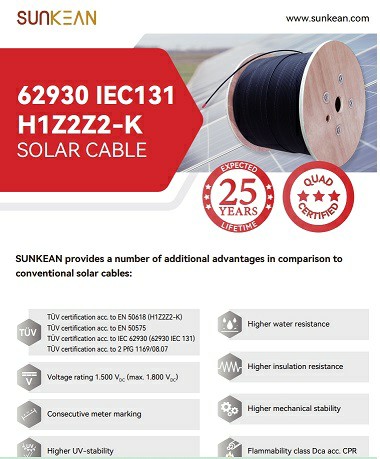62930 IEC/H1Z2Z2-K a la certification étanche AD7 pour les endroits humides, sombres et humides. Il représente qu'il appartient à l'imperméable.