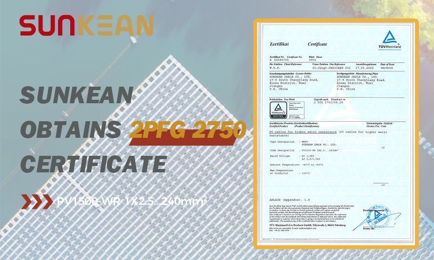 Le 24 mai 2023, lors de la 16e conférence et exposition internationale sur l'énergie solaire photovoltaïque et intelligente (SNEC), TUV Rheinland a délivré la certification standard du câble photovoltaïque flottant 2 PfG 2750 à SUNKEAN. SUNKEAN est à la pointe de l'industrie dans la R&D et la fabrication de câbles solaires flottants. Elle s'est toujours engagée à aider au développement de l'industrie photovoltaïque et à la diversification des applications photovoltaïques, et à promouvoir activement le processus de normalisation de l'industrie.