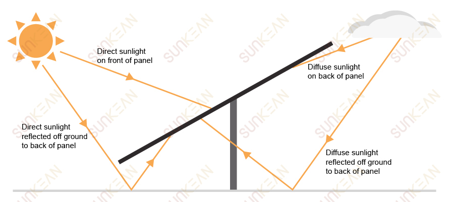 la surface supplémentaire signifie également que les panneaux bifaciaux fonctionnent mieux en lumière diffuse., ce qui réduit les coûts à long terme par rapport aux panneaux monofaciaux.
