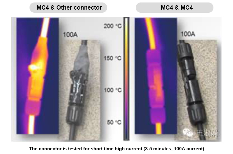 une enquête conjointe menée par fraunhofer ISE et TUV a révélé une forte probabilité d'incendies causés par des connecteurs. la raison fondamentale de l'incendie du connecteur est que la résistance du connecteur augmente dans des conditions de circulation du courant, qui augmente la température monter et dépasser la plage de température que la coque en plastique et les pièces métalliques peuvent supporter, provoquant ainsi un incendie. donc, la défaillance du connecteur et la cause de l'incendie sont le résultat de l'action combinée du plastique coque et les parties métalliques.