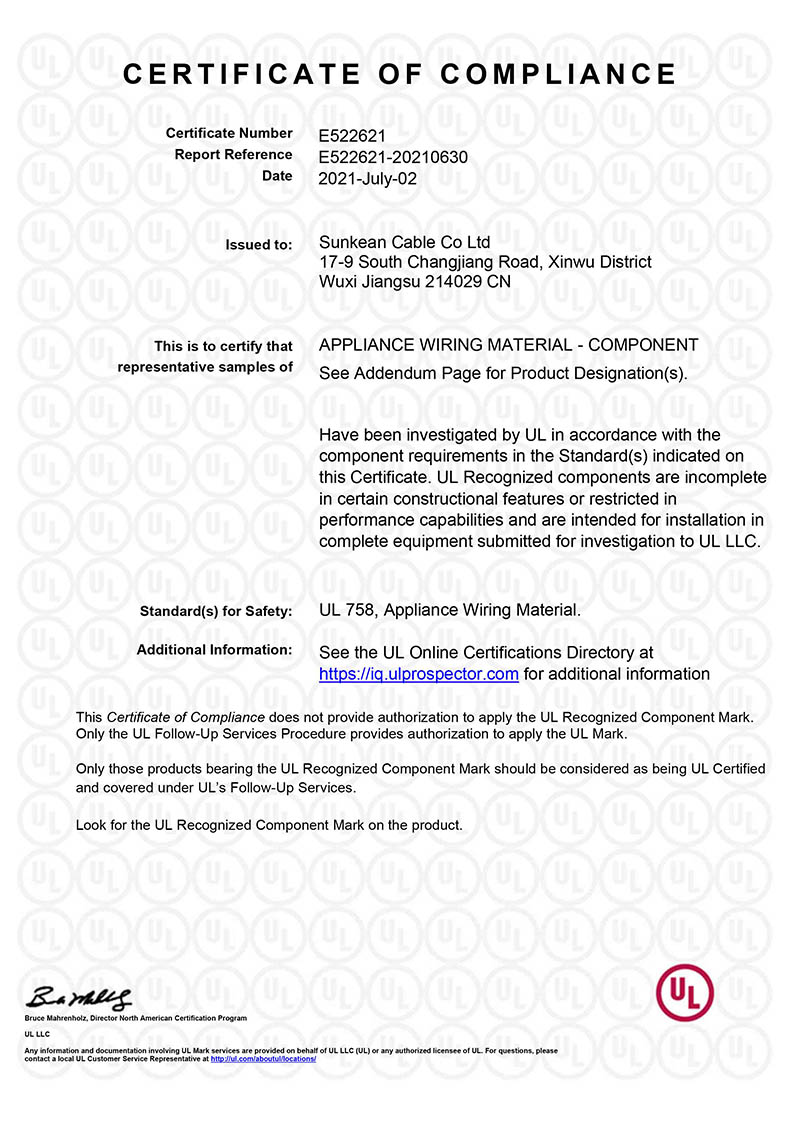 Récemment, Sunkean obtenu le UL758 Produit standard Certification. Le certificat contient 6 produits Spécifications: 1015, 1283, 1284, 10070, 10269, 11627.