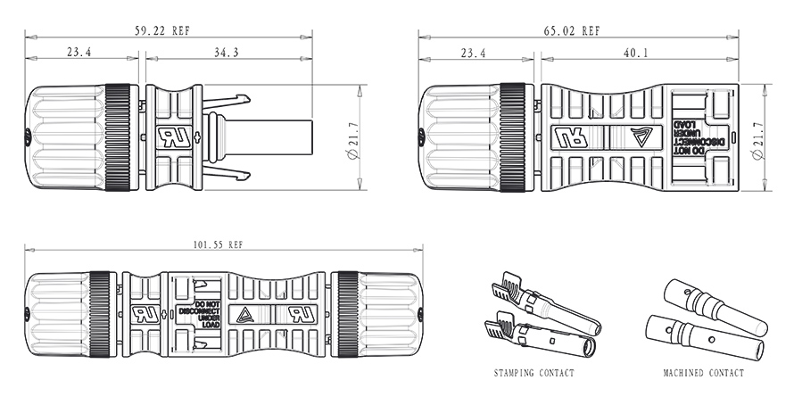 CEI 62852 & UL6703 TÜV / UL 1500V dc * 40A max ( 14AWG / 2,5 mm²) * 45A max ( 12AWG / 4.0mm²) * 55A max ( 10AWG / 6,0 mm²) * 80A max ( 8AWG / 10,0 mm²) 0,25 mΏ TYP température de fonctionnement -40 ° C à + 85 ° C degré de protection IP68 accouplé & IP2X non accouplé style de contact emboutissage formé / usiné classe de flamme UL94 V-0 classe de sécurité modèle no. SKE-DA la norme tension nominale courant nominal résistance de contact ii