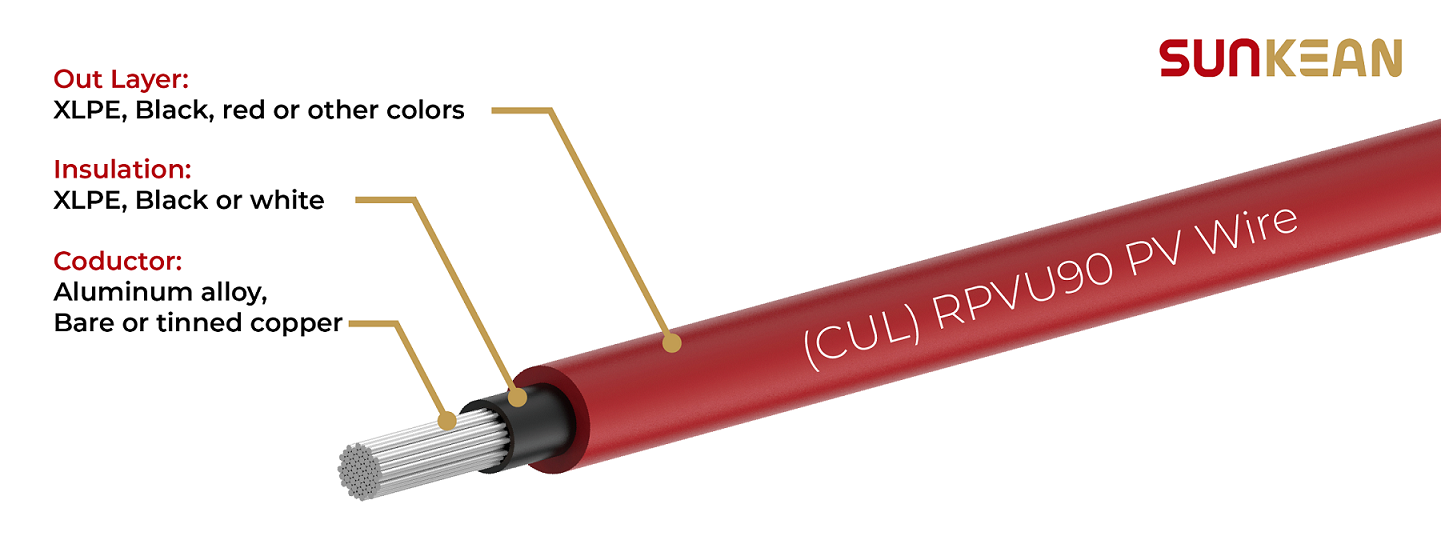 Fil PV RPVU90 2kV 1/0AWG avec alliage d'aluminium , double couche