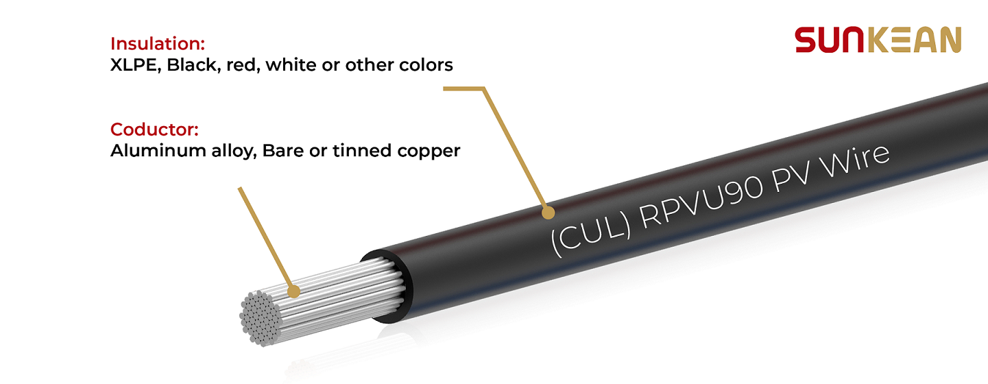 Fil PV RPVU90 2kV 6AWG avec alliage d'aluminium , monocouche