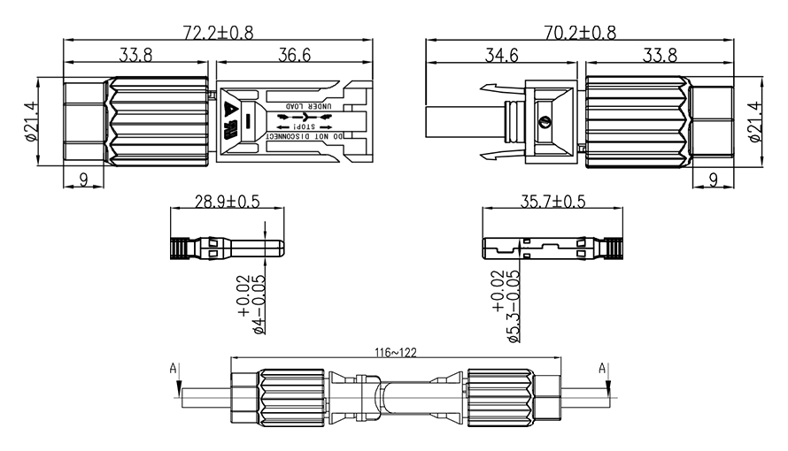 IP68 Les joints mâles et femelles de connecteur dc solaire photovoltaïque étanche sont approuvés par TUV, qui peut accueillir des câbles photovoltaïques avec différents isolants diamètres