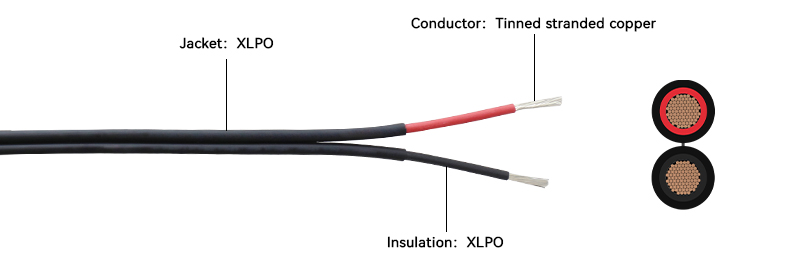 ce câble d'extension solaire à deux conducteurs utilise un câble solaire TÜV 2pfg PV1-F, le câble à deux conducteurs est plus pratique à gérer.